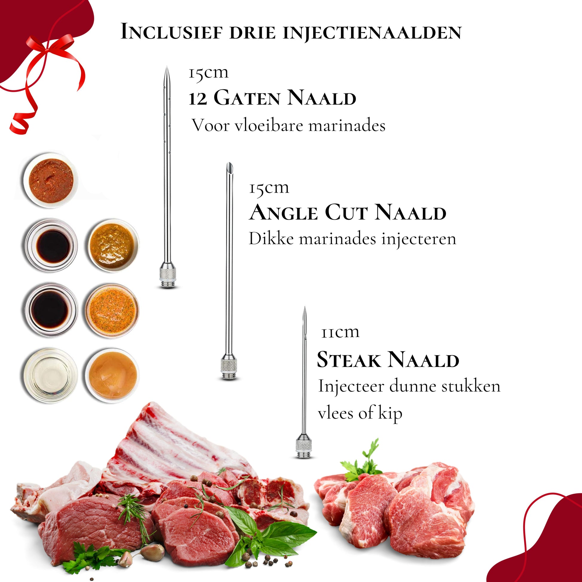 Het op smaak brengen van kip of andere soorten vlees, met pittige marinades, bouillons of vruchtsappen. Dit kun je natuurlijk aan de buitenkant van het vlees doen. Maar het is nog lekkerder om de marinade aan de binnenkant van het vlees te injecteren. Met Rednas Marinade spuit kun je dit op drie verschillende manieren doen.