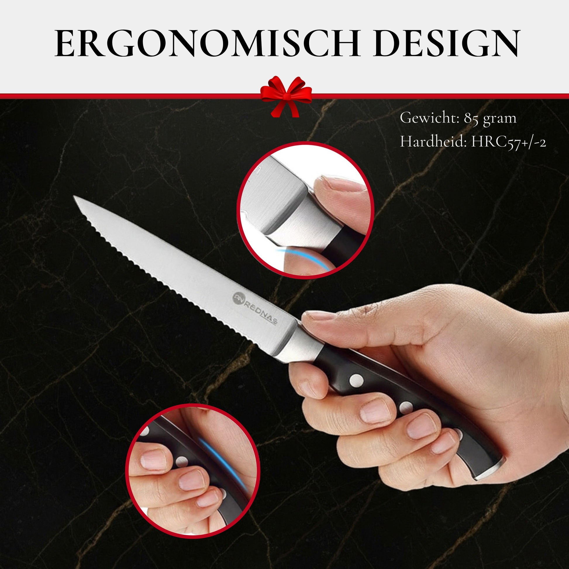 Ervaar het verschil bij elke snijbeweging. Bestel de Rednas steakmessenset vandaag nog!