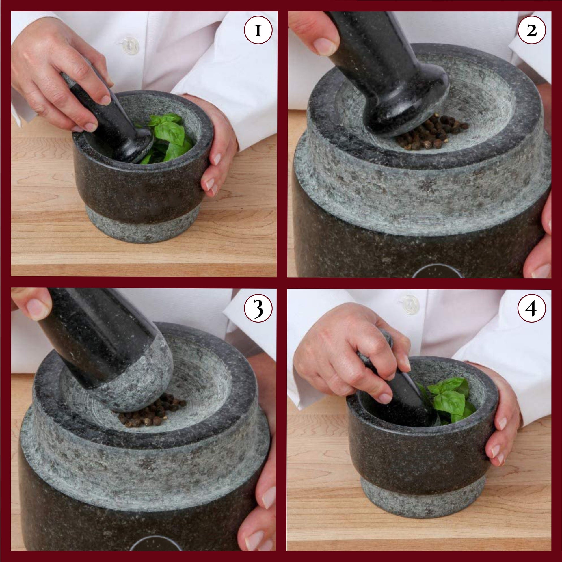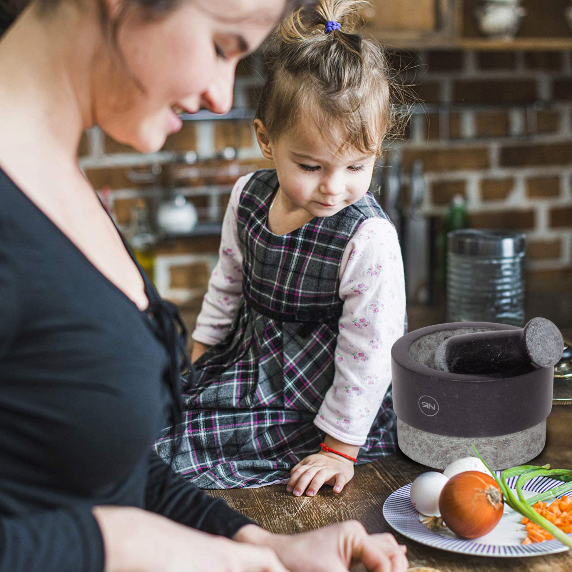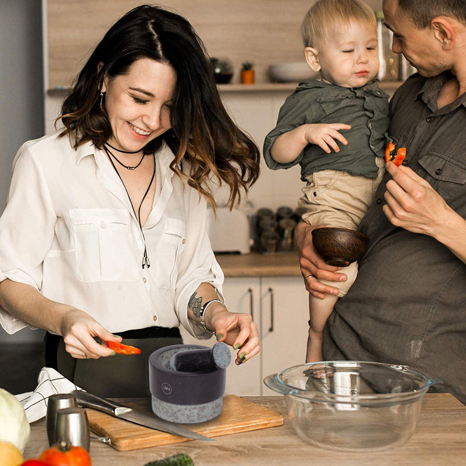 Ontdek onze veelzijdige omkeerbare vijzel en stamper, essentieel voor elke keuken. Het unieke design behoudt de pure smaken zonder vermenging. Gemaakt van massief graniet voor levenslang plezier en stabiliteit. Het elegante design past naadloos op je aanrecht, inclusief siliconen anti-slipmat voor extra bescherming.